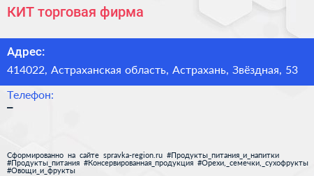 КИТ, торговая фирма по адресу 414022, Астраханская область, Астрахань, Звёздная, 53 в дальнейшем Организация, размещена в следующих категориях: