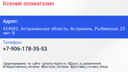 Ксения, зоомагазин по адресу 414041, Астраханская область, Астрахань, Рыбинская, 25 лит В в дальнейшем Организация, размещена в следующих категориях: