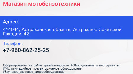 Магазин мотобензотехники по адресу 414044, Астраханская область, Астрахань, Советской Гвардии, 42 в дальнейшем Организация, размещена в следующих категориях: