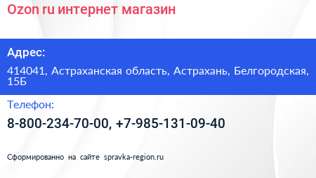 Ozon.ru, интернет-магазин по адресу 414041, Астраханская область, Астрахань, Белгородская, 15Б в дальнейшем Организация, размещена в следующих категориях: