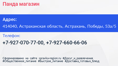 Панда, магазин по адресу 414040, Астраханская область, Астрахань, Победы, 53а/5 в дальнейшем Организация, размещена в следующих категориях: