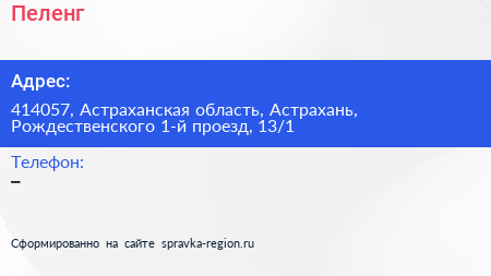 Пеленг по адресу 414057, Астраханская область, Астрахань, Рождественского 1-й проезд, 13/1 в дальнейшем Организация, размещена в следующих категориях: