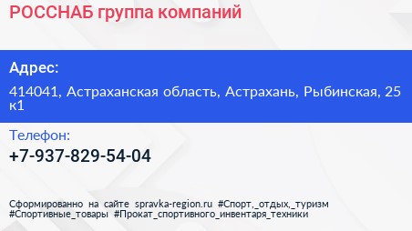 РОССНАБ, группа компаний по адресу 414041, Астраханская область, Астрахань, Рыбинская, 25 к1 в дальнейшем Организация, размещена в следующих категориях:
