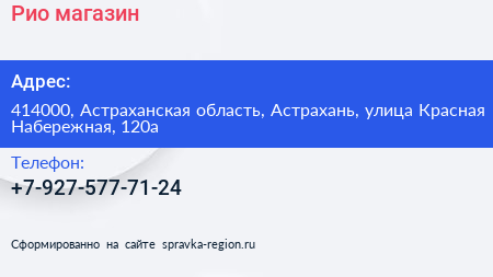 Рио, магазин по адресу 414000, Астраханская область, Астрахань, улица Красная Набережная, 120а в дальнейшем Организация, размещена в следующих категориях: