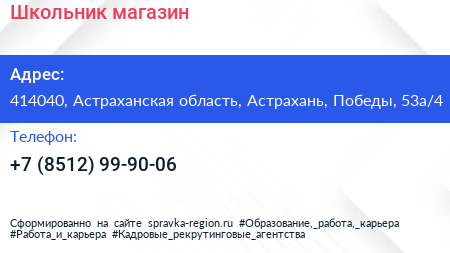 Школьник, магазин по адресу 414040, Астраханская область, Астрахань, Победы, 53а/4 в дальнейшем Организация, размещена в следующих категориях: