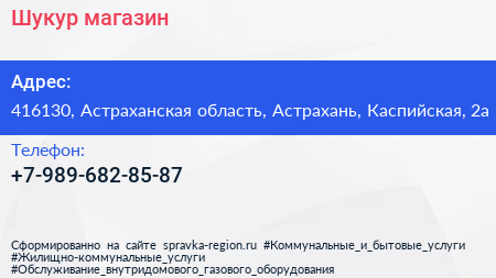 Шукур, магазин по адресу 416130, Астраханская область, Астрахань, Каспийская, 2а в дальнейшем Организация, размещена в следующих категориях:
