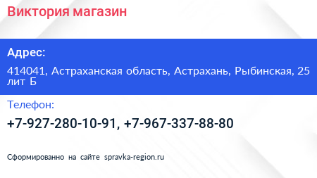 Виктория, магазин по адресу 414041, Астраханская область, Астрахань, Рыбинская, 25 лит Б в дальнейшем Организация, размещена в следующих категориях: