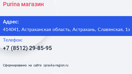 Purina, магазин по адресу 414041, Астраханская область, Астрахань, Славянская, 1з в дальнейшем Организация, размещена в следующих категориях: