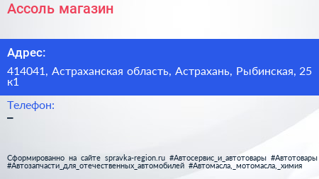 Ассоль, магазин по адресу 414041, Астраханская область, Астрахань, Рыбинская, 25 к1 в дальнейшем Организация, размещена в следующих категориях: