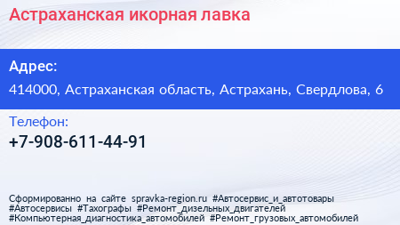 Астраханская икорная лавка по адресу 414000, Астраханская область, Астрахань, Свердлова, 6 в дальнейшем Организация, размещена в следующих категориях: