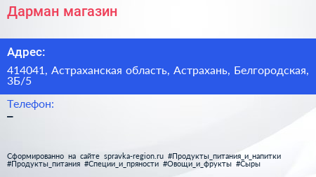 Дарман, магазин по адресу 414041, Астраханская область, Астрахань, Белгородская, 3Б/5 в дальнейшем Организация, размещена в следующих категориях: