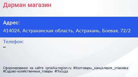 Дарман, магазин по адресу 414024, Астраханская область, Астрахань, Боевая, 72/2 в дальнейшем Организация, размещена в следующих категориях: