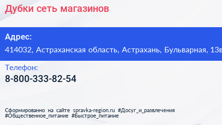 Дубки, сеть магазинов по адресу 414032, Астраханская область, Астрахань, Бульварная, 13в в дальнейшем Организация, размещена в следующих категориях: