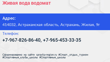 Живая вода, водомат по адресу 414032, Астраханская область, Астрахань, Жилая, 9г в дальнейшем Организация, размещена в следующих категориях: