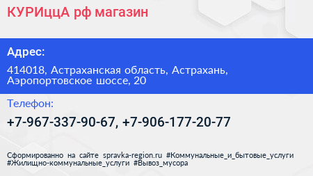 КУРИццА.рф, магазин по адресу 414018, Астраханская область, Астрахань, Аэропортовское шоссе, 20 в дальнейшем Организация, размещена в следующих категориях: