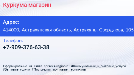 Куркума, магазин по адресу 414000, Астраханская область, Астрахань, Свердлова, 105 в дальнейшем Организация, размещена в следующих категориях:
