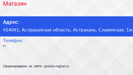 Магазин по адресу 414041, Астраханская область, Астрахань, Славянская, 1ж в дальнейшем Организация, размещена в следующих категориях: