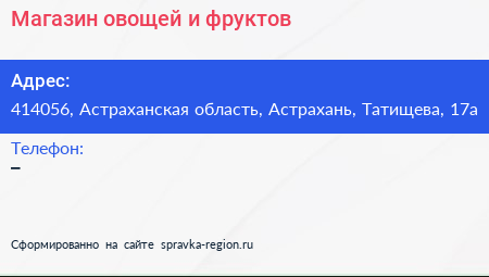 Магазин овощей и фруктов по адресу 414056, Астраханская область, Астрахань, Татищева, 17а в дальнейшем Организация, размещена в следующих категориях:
