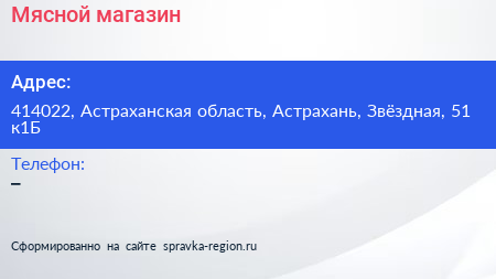 Мясной магазин по адресу 414022, Астраханская область, Астрахань, Звёздная, 51 к1Б в дальнейшем Организация, размещена в следующих категориях: