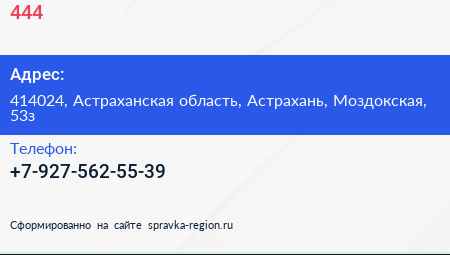 444 по адресу 414024, Астраханская область, Астрахань, Моздокская, 53з в дальнейшем Организация, размещена в следующих категориях: