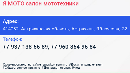 Я-МОТО, салон мототехники по адресу 414052, Астраханская область, Астрахань, Яблочкова, 32 в дальнейшем Организация, размещена в следующих категориях: