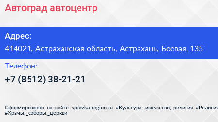 Автоград, автоцентр по адресу 414021, Астраханская область, Астрахань, Боевая, 135 в дальнейшем Организация, размещена в следующих категориях:
