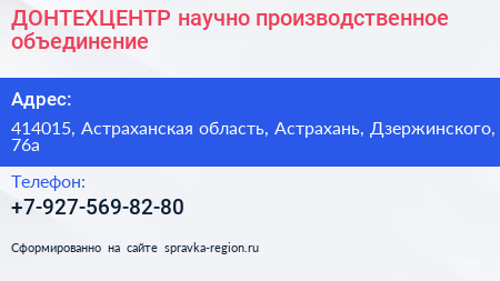 ДОНТЕХЦЕНТР, научно-производственное объединение по адресу 414015, Астраханская область, Астрахань, Дзержинского, 76а в дальнейшем Организация, размещена в следующих категориях: