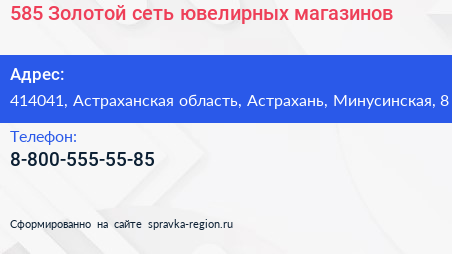 585 Золотой, сеть ювелирных магазинов по адресу 414041, Астраханская область, Астрахань, Минусинская, 8 в дальнейшем Организация, размещена в следующих категориях: