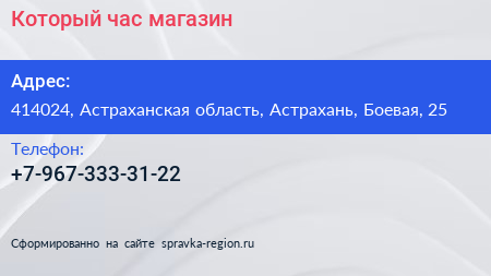 Который час?, магазин по адресу 414024, Астраханская область, Астрахань, Боевая, 25 в дальнейшем Организация, размещена в следующих категориях: