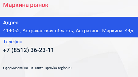 Маркина, рынок по адресу 414052, Астраханская область, Астрахань, Маркина, 44д в дальнейшем Организация, размещена в следующих категориях: