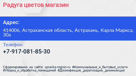Радуга цветов, магазин по адресу 414006, Астраханская область, Астрахань, Карла Маркса, 30а в дальнейшем Организация, размещена в следующих категориях: