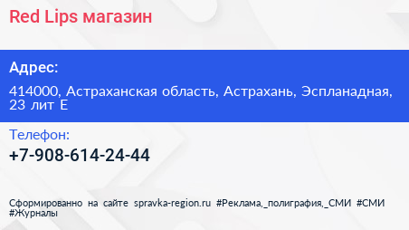 Red Lips, магазин по адресу 414000, Астраханская область, Астрахань, Эспланадная, 23 лит Е в дальнейшем Организация, размещена в следующих категориях: