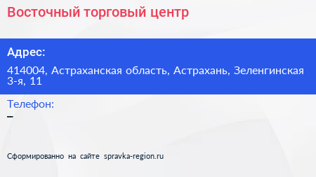Восточный, торговый центр по адресу 414004, Астраханская область, Астрахань, Зеленгинская 3-я, 11 в дальнейшем Организация, размещена в следующих категориях: