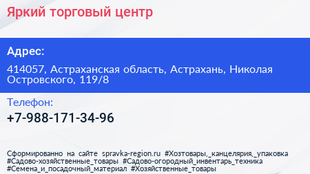 Яркий, торговый центр по адресу 414057, Астраханская область, Астрахань, Николая Островского, 119/8 в дальнейшем Организация, размещена в следующих категориях: