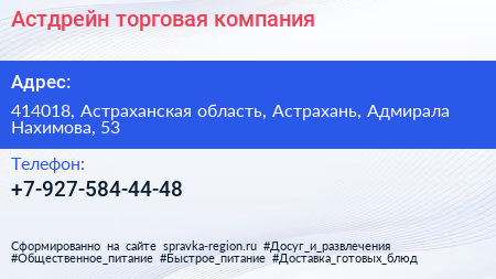 Астдрейн, торговая компания по адресу 414018, Астраханская область, Астрахань, Адмирала Нахимова, 53 в дальнейшем Организация, размещена в следующих категориях: