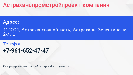 Астраханьпромстройпроект, компания по адресу 414004, Астраханская область, Астрахань, Зеленгинская 2-я, 1 в дальнейшем Организация, размещена в следующих категориях: