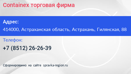 Containex, торговая фирма по адресу 414000, Астраханская область, Астрахань, Гилянская, 88 в дальнейшем Организация, размещена в следующих категориях: