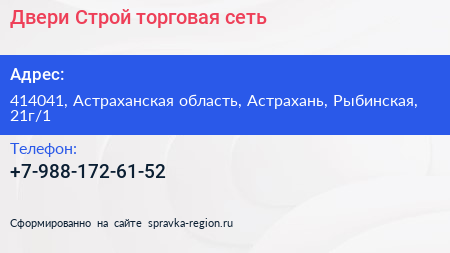 Двери-Строй, торговая сеть по адресу 414041, Астраханская область, Астрахань, Рыбинская, 21г/1 в дальнейшем Организация, размещена в следующих категориях:
