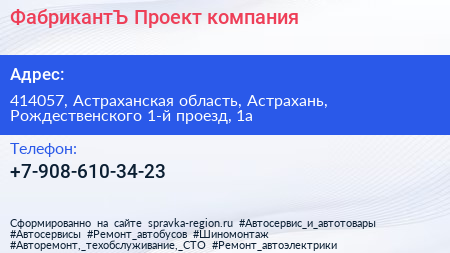 ФабрикантЪ Проект, компания по адресу 414057, Астраханская область, Астрахань, Рождественского 1-й проезд, 1а в дальнейшем Организация, размещена в следующих категориях: