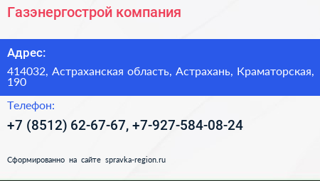 Газэнергострой, компания по адресу 414032, Астраханская область, Астрахань, Краматорская, 190 в дальнейшем Организация, размещена в следующих категориях: