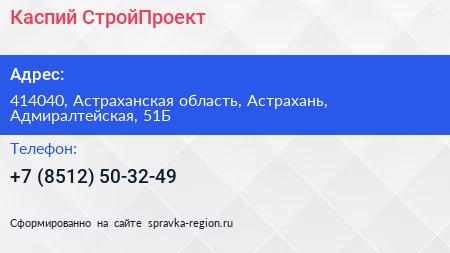 Каспий-СтройПроект по адресу 414040, Астраханская область, Астрахань, Адмиралтейская, 51Б в дальнейшем Организация, размещена в следующих категориях: