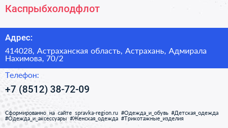 Каспрыбхолодфлот по адресу 414028, Астраханская область, Астрахань, Адмирала Нахимова, 70/2 в дальнейшем Организация, размещена в следующих категориях: