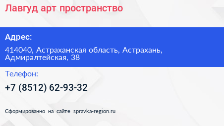 Лавгуд, арт-пространство по адресу 414040, Астраханская область, Астрахань, Адмиралтейская, 38 в дальнейшем Организация, размещена в следующих категориях: