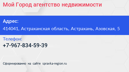Мой Город, агентство недвижимости по адресу 414041, Астраханская область, Астрахань, Азовская, 5 в дальнейшем Организация, размещена в следующих категориях: