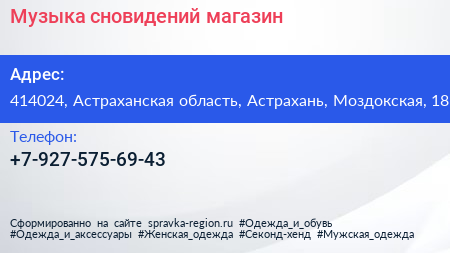 Музыка сновидений, магазин по адресу 414024, Астраханская область, Астрахань, Моздокская, 18 в дальнейшем Организация, размещена в следующих категориях: