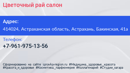 Цветочный рай, салон по адресу 414024, Астраханская область, Астрахань, Бакинская, 41а в дальнейшем Организация, размещена в следующих категориях: