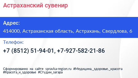 Астраханский сувенир по адресу 414000, Астраханская область, Астрахань, Свердлова, 6 в дальнейшем Организация, размещена в следующих категориях: