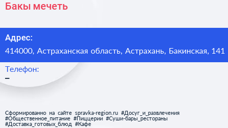 Бакы, мечеть по адресу 414000, Астраханская область, Астрахань, Бакинская, 141 в дальнейшем Организация, размещена в следующих категориях: