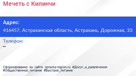 Мечеть, с. Килинчи по адресу 416457, Астраханская область, Астрахань, Дорожная, 33 в дальнейшем Организация, размещена в следующих категориях: