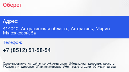 Оберег по адресу 414040, Астраханская область, Астрахань, Марии Максаковой, 5а в дальнейшем Организация, размещена в следующих категориях: